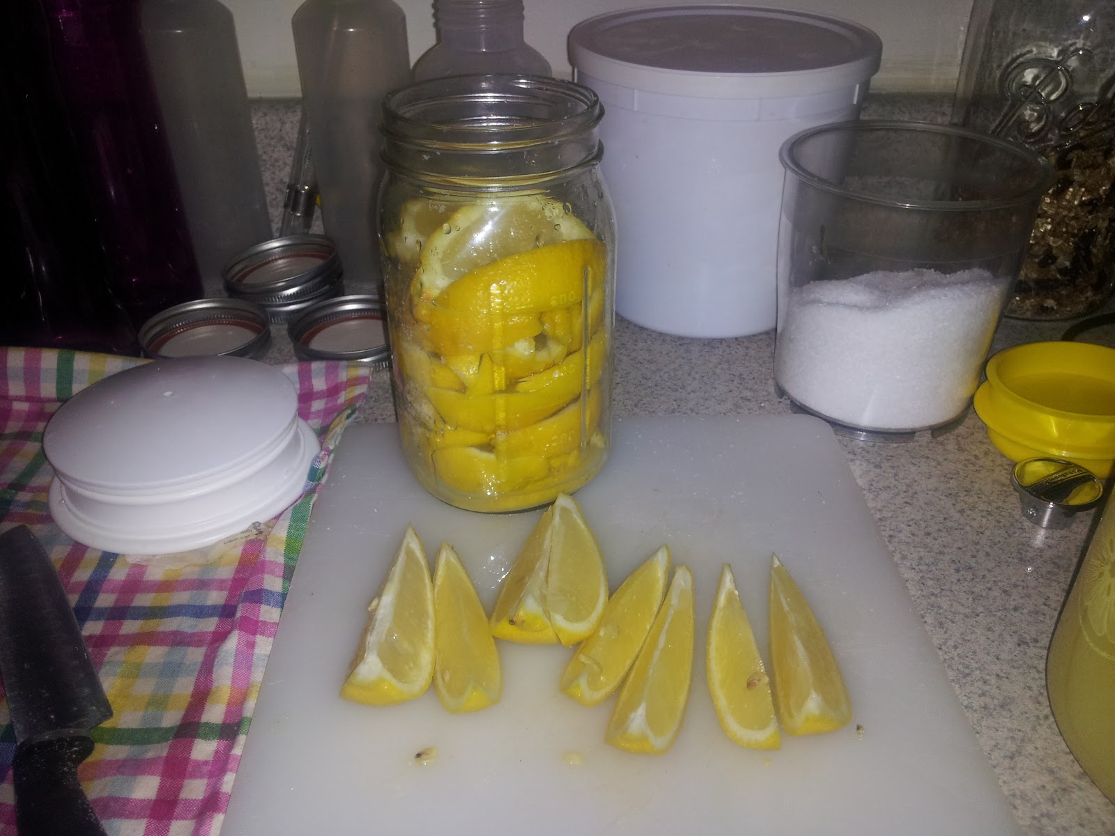 5. Let the lemons sit on your counter for 24 hours. After 24 hours, fill the quart jar with fresh lemon juice, ensuring that you cover the lemons.